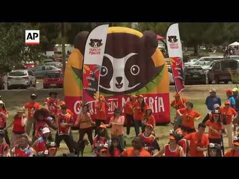 Hundreds of people in Ecuador’s capital took a stance against mining by performing a dance filmed for social media. (AP Video/Cesar Olmos)