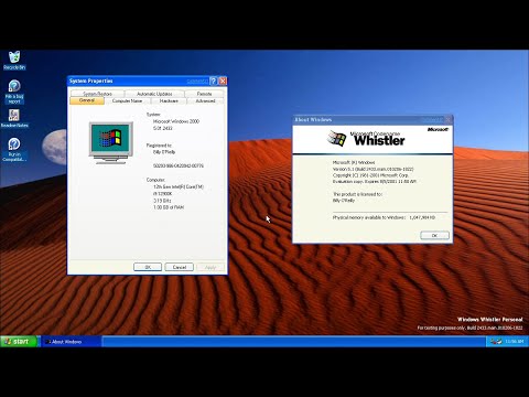 This is Windows Whistler Build 2433 (2433.main.010206-1822) in VMware Workstation Pro. This is a Beta 2 build which was compiled on 2001-02-06 and expires on 2001-08-05. This build was made public on 28 April 2011. While it is a minor build, an interesting fact is that it is the last currently known build to contain CD Player.